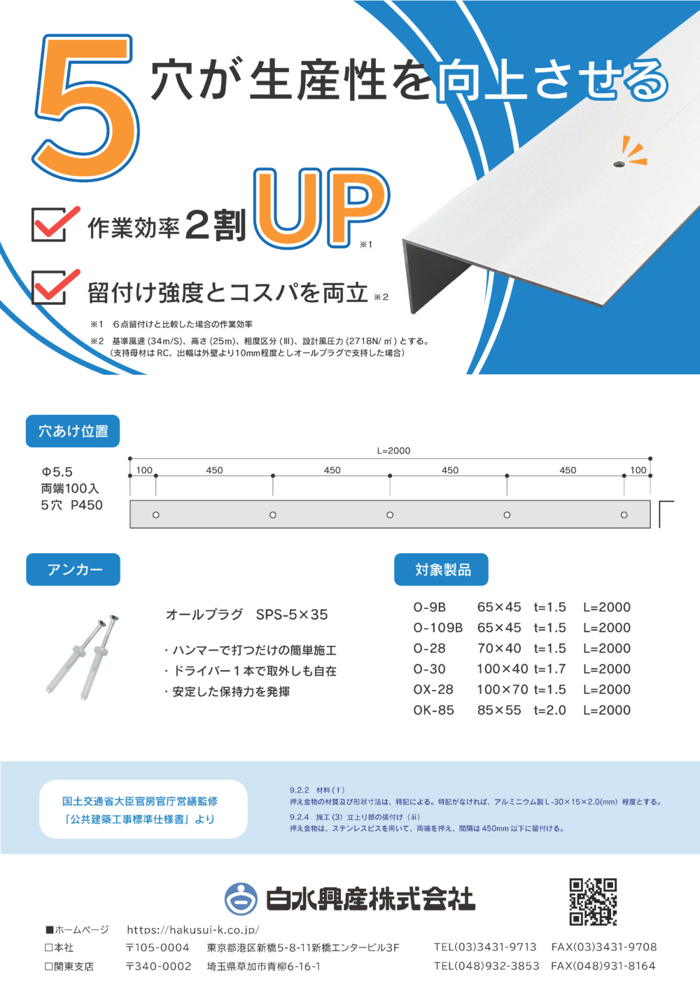 ・穴あけ在庫ですと穴あけ代は無償となり、納品後すぐに取付が可能です。